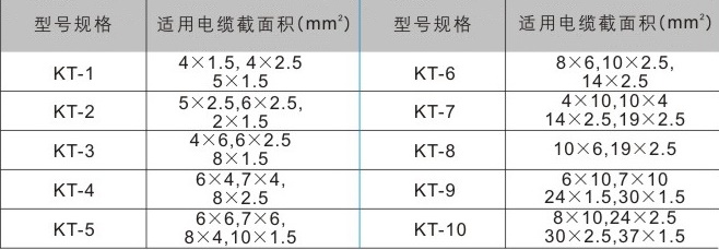 控制电缆头套参数表